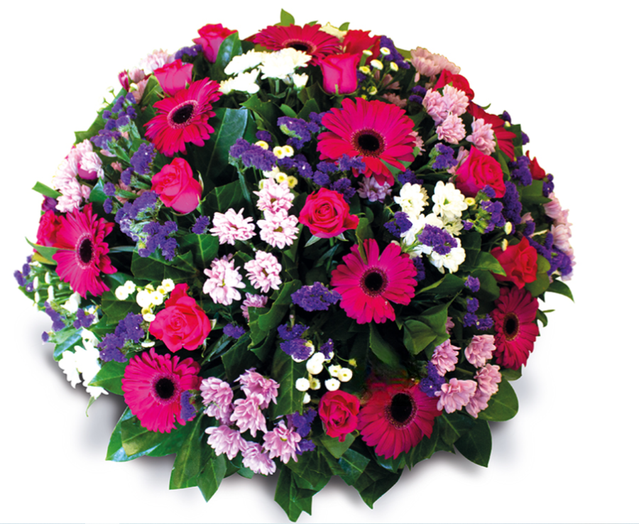 Matricaire blanc, Statice bleu, Rose fuchsia, Gerbera fuchsia, Bonny rose, Lentisque