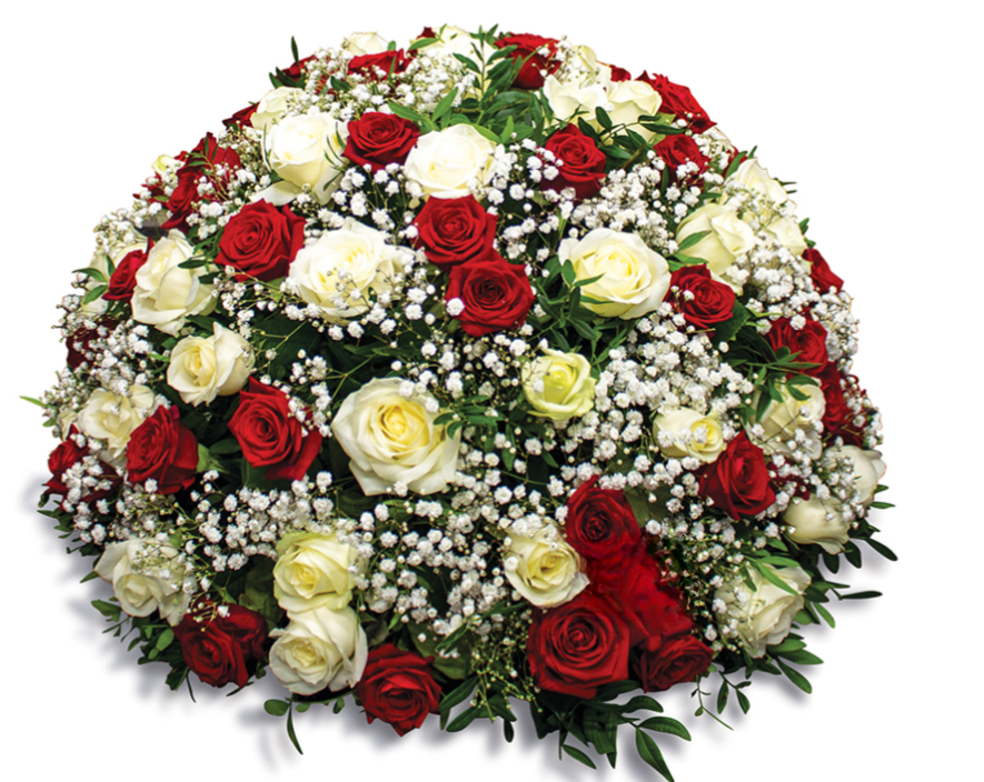 Rose blanche, Rose rouge, Gypsophile blanc, Lentisque
