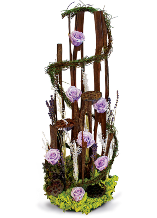 Rose mauve stab, Lotus noir stab, Lichen vert fluo stab, Fougere arborescente stab, Avoine stab, Traine de mousse stab, Lavande bleue stab