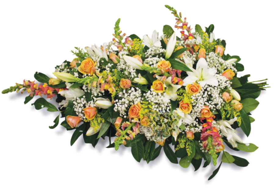 Lys multi blanc, Rose orange, Muflier miel, Gypsophile blanc, Solidalgo, Lentisque