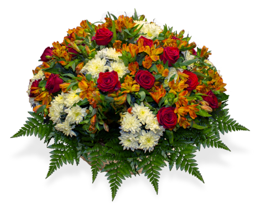 Alstromeria orange, Rose rouge, Bonny blanc euro